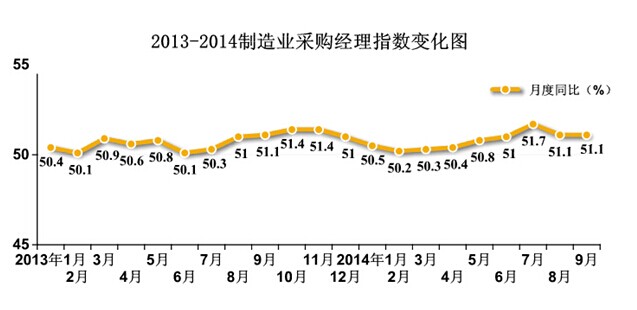 9月份,工业生产的重要先行指标—PMI为51.1%,与8月份持平,居年内次高点。